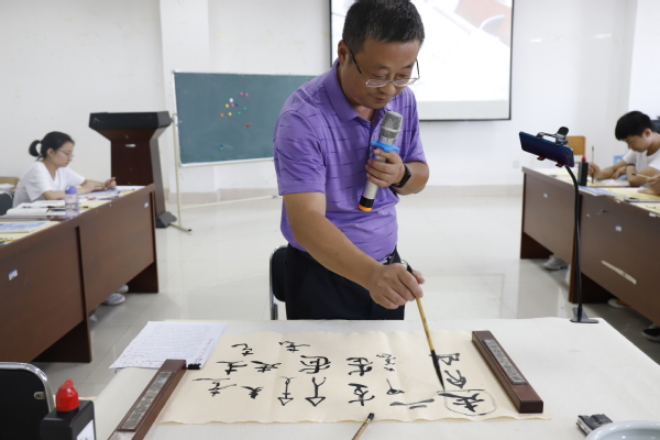 图为左宗文校助正在传授书法 摄影:宋林玲