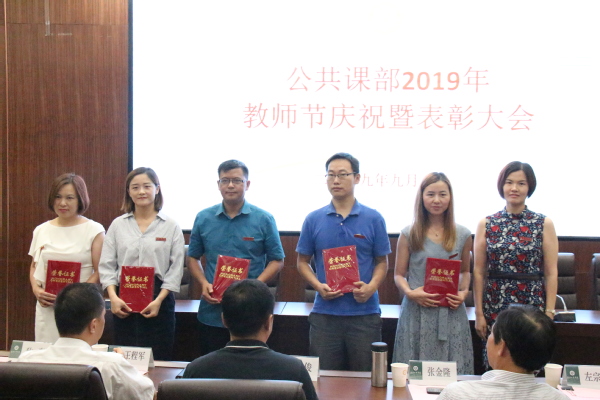新闻中心讯(记者 袁灏宸)9月5日下午2:30,武汉工商学院公共课部2019年教师节庆祝暨表彰大会在第四会议室隆重召开。华中科技大学教授、武汉工商学院原校长张金隆,武汉工商学院副校长张俊,校长助理左宗文、王程军、刘春,学校办公室主任狄奥,公共课部主任吴珊、副主任李晶,党总支书记朱威以及各学院(部)教师代表参加了此次会议,会议由朱威书记主持。