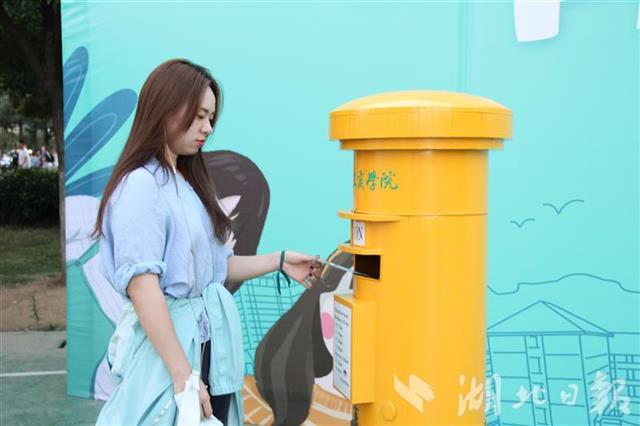 新生们纷纷把青春的梦想与期盼写在明信片上,并投入“未来站”邮筒里,希望明信片穿越时光“寄”给毕业时的自己。