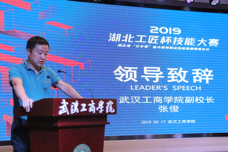 新闻中心讯(记者 李洋洋 孙伊珞)“开展技能竞赛是加强技能型人才培养、选拔,促进优秀技能人才脱颖而出的重要途径,是弘扬工匠精神,培养‘大国工匠’的重要手段。”9月17日,2019 年“湖北工匠杯”技能大赛——湖北省“日丰管”室内装饰职业技能竞赛颁奖典礼在武汉工商学院举行,作为比赛的协办单位,学校副校长张俊在颁奖现场表示,举办2019年“湖北工匠杯”技能大赛,是为全省技能精英搭建一个切磋技艺、展示技能的大舞台,进一步营造劳动光荣的社会风尚和精益求精的敬业风气,引导广大青年学生钻研技术、苦练技能,走技能成才之路,为谱写中国梦提供源源不断的技能人才支撑。