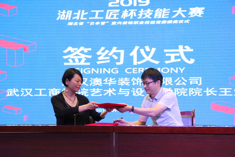活动现场,湖北省室内装饰协会秘书长张莉、武汉澳华装饰有限公司代表还分别与武汉工商学院艺术与设计学院荣誉院长许开强、院长王海文签署了校企战略合作协议。
