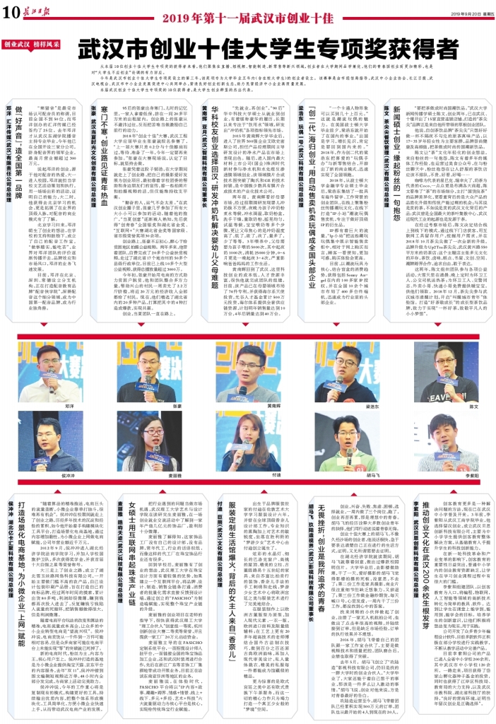 本届武汉创业十佳大学生专项奖的10位获得者,是大学生创业群里的杰出代表。