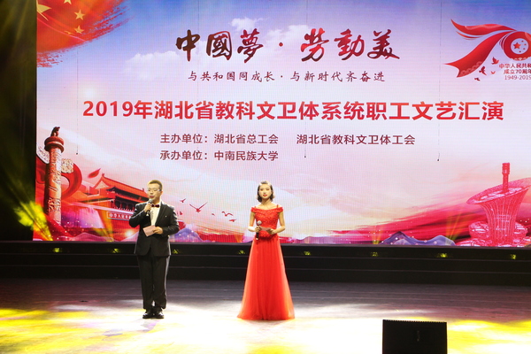 新闻中心讯(特约记者 苏红)为迎接新中国成立70周年,9月19日,由湖北省总工会、湖北省教科文卫体工会主办的“中国梦·劳动美---与共和国同成长、与新时代齐奋进”2019年湖北省教科文卫体系统职工文艺汇演在中南民族大学举行,武汉工商学院工会选送的节目《古典舞:在水一方》获得优秀奖。