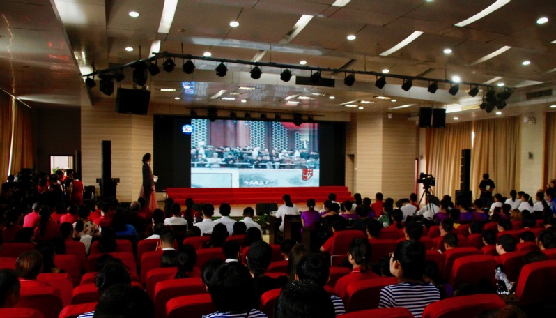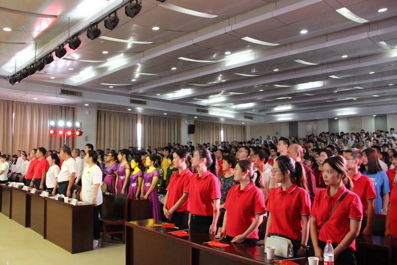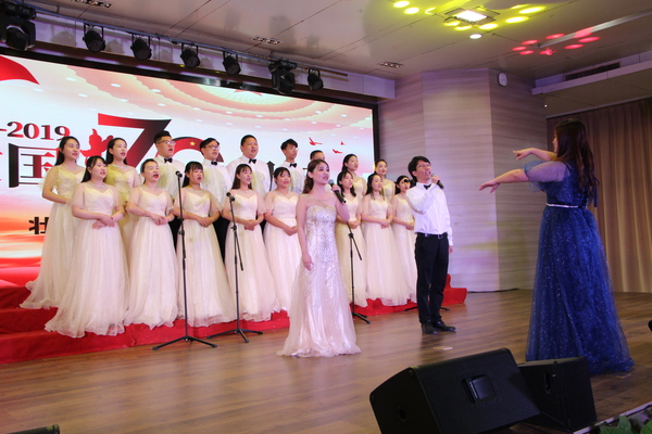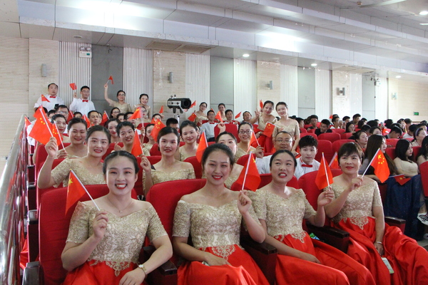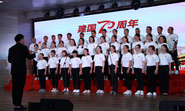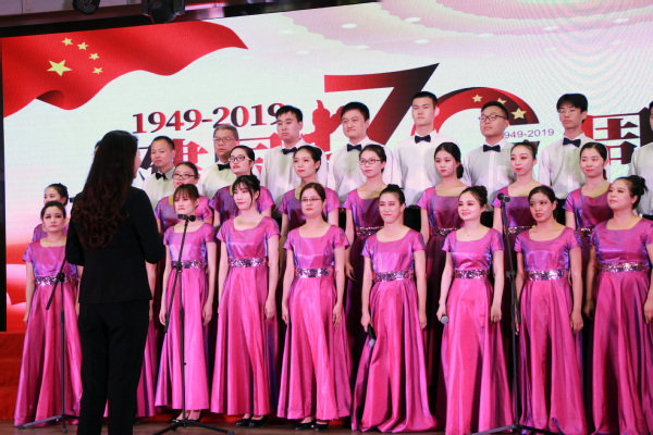 新闻中心讯(记者 顾晴阳)与共和国同成长,与新时代齐奋进。9月26日下午2:00,武汉工商学院隆重举行“不忘初心、牢记使命”主题教育暨庆祝新中国成立70周年教职工合唱汇演。在学校体育馆402学术报告厅,广大教职员工以爱国奋斗的火热情怀、昂扬动听的嘹亮歌声,献礼中华人民共和国70华诞,上演了一场尽显爱国情怀与时代韵律的视听盛宴。