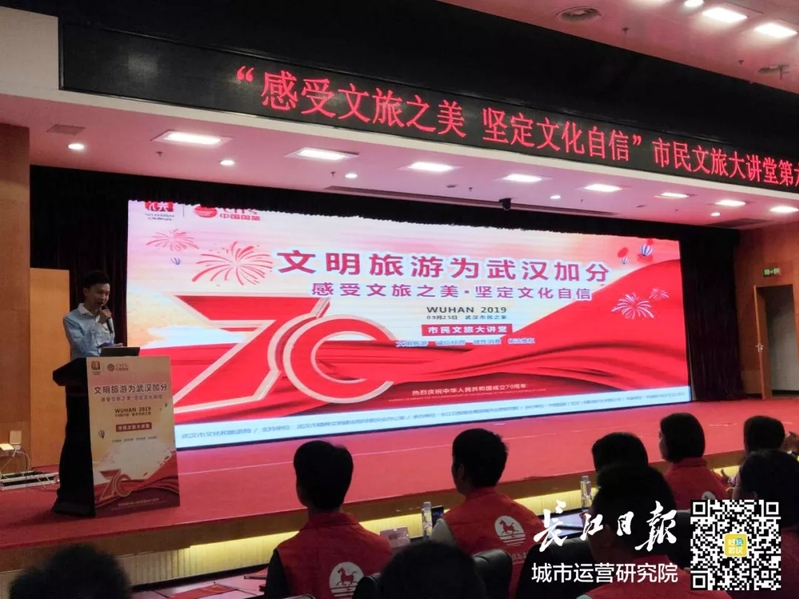 来自武汉工商学院、武汉旅游学校的学生,中国国旅(武汉)星级导游中心和杨飞虎导游工作室的导游、领队,现场聆听了专家宣讲。