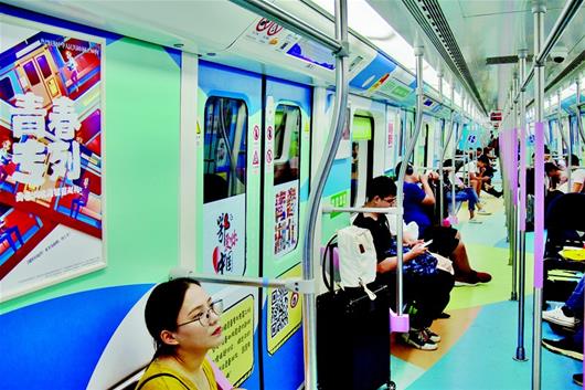 楚天都市报讯(记者王进良 通讯员 袁灏宸 李洋洋 李麒麟)由武汉工商学院“字绘中国”师生团队参与设计的“青春湖北号”武汉地铁2号线(如图),运行一周以来颇受欢迎,不少市民与大学生专程前去围观打卡,成为新晋网红。