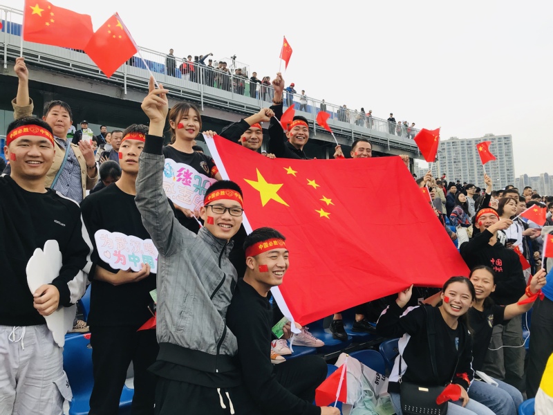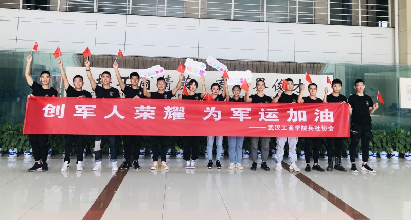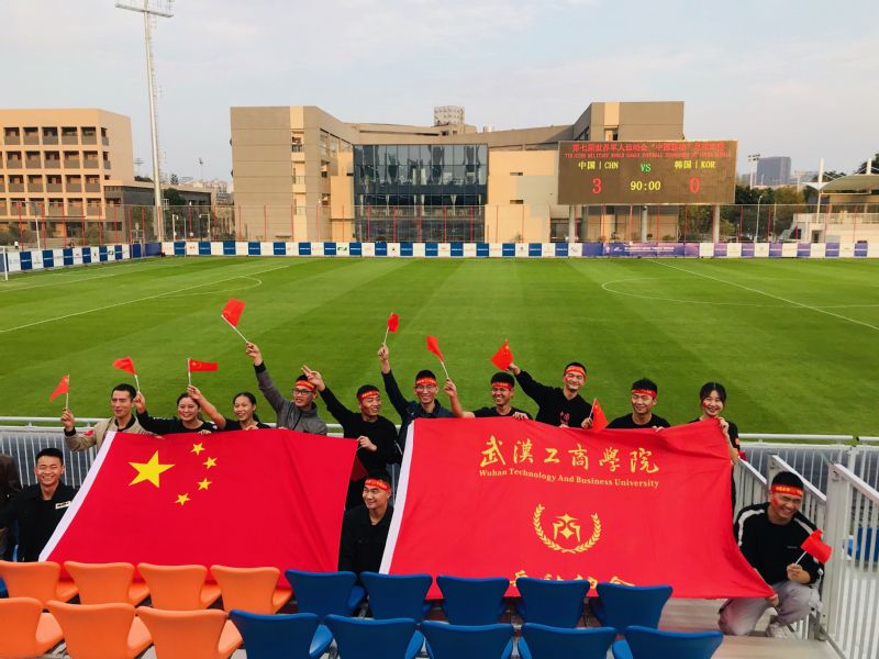 新闻中心讯(记者 李洋洋)身穿印有中国国旗的统一服装,脸贴国旗贴纸,头系“中国必胜”系带,手持小国旗,并专门设计了为中国加油、为武汉喝彩的手持应援牌……10月17日下午3点,第七届世界军人运动会女子足球小组赛在武汉全民健身中心拉开帷幕,中国八一女足3:0战胜韩国队赢得开门红。武汉工商学院13名退伍大学生一身“豪华”的应援装备与行头,化身最强助威“兵”团到现场观看了比赛,为中国队应援、加油助威。