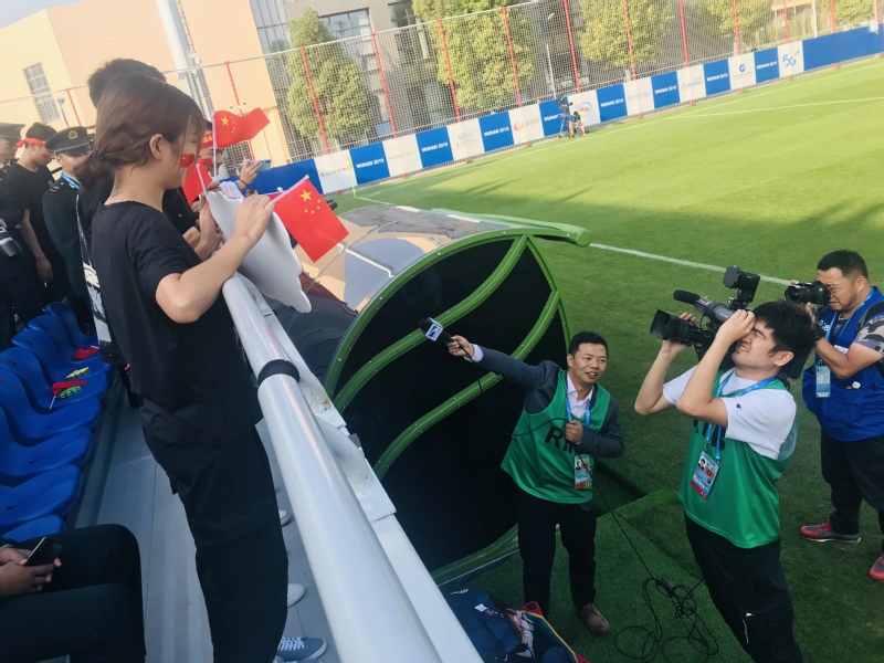 “这一次军运会开到了家门口武汉,非常有幸和开心能够到现场观看比赛,希望能通过自己力所能及的方式为军运助威、为武汉喝彩、为中国加油,也让世人看到武汉大学生的风采,感受到我们退伍军人的激情与活力。”兵社协会的会长范镇介绍道,他曾服役于原54军叶挺独立团,这是一个被称为“铁军”的地方,退伍不褪色,八一女足和中国铁军的精神将在今后的学习生活中永远激励着他,在自己的岗位上继续发光发热,争当新时代的社会主义接班人和建设者。