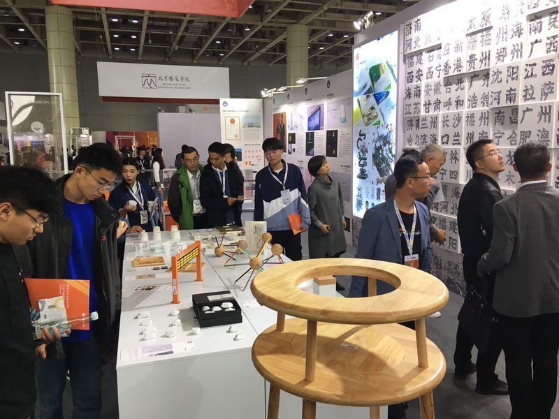 本次国际设计产业博览会共展出2000多家创新企业、领军设计机构、国际大师、200多所知名高校的设计作品,总面积达30000平方米。其中武汉工商学院作为展方之一,设立了单独的展台,共展出了王海文、徐郑冰、郑中、金龙、李培羽、王雪等老师带领的师生团队创作的二十余件优秀作品,其中包含荣获“德国红点奖”及入选第十三届全国美展的“字绘中国”系列作品、曾入选米兰设计周展的作品“海胆笔筒”等,充分展现了近几年来学院优秀的教学成果,吸引了来自于世界各地的参观者关注。