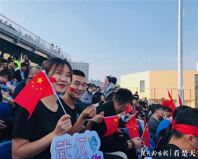 王茜(左一)在军运会赛场加油助威 摄影:李洋洋
