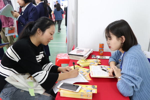 图为学生正在与企业交流 摄影:黄娟