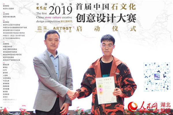人民网武汉11月11日电 11月6日,作为2019武汉设计双年展活动之一的全国首届石文化创意设计大赛在汉正式启动,武汉工商学院艺术与设计学院大二学生张亮的课程作品被确定为大赛主视觉设计并在启动仪式上首发亮相,获赞无数,该校另外19名学生参与设计的14幅课程作品也在武汉双年展主会场展出。