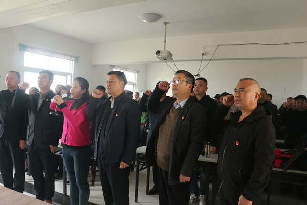 王曼副部长带领全体党员重温入党誓词,马家寨乡党委书记贺伟同志首先致辞,左宗文校助领学十九届四中全会精神主要内容,阐明了全会的重大意义,阐释了中国特色社会主义制度和国家治理体系的显著优势,围绕全会《决定》提出的总体要求、总体目标和重点任务进行了系统解读,并结合学习宣传贯彻全会精神、坚定制度自信深入地畅谈了围绕贯彻落实习近平总书记关于“三农”工作的重要论述、打赢脱贫攻坚战、实施乡村振兴战略、推进农业农村现代化的认识体会。