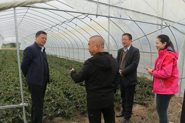 图为刘生元书记考察调研蔬菜大棚种植情况 摄影:谭锦涛