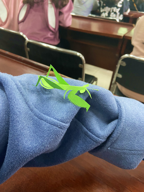 此外,沈松柏还向同学们展示了立体剪纸、肖像剪纸、昆虫剪纸、动植物剪纸和军运会艺术剪纸等作品,并在现场与同学们展开互动,指导同学们进行剪纸创作,手把手地教授大家剪纸技法,让同学们在一纸一剪中感受中国剪纸艺术的独特魅力。沈松柏认为,作为传统民间工艺的创作者,传承传统文化艺术是一项义不容辞的责任。“在这个快节奏生活的时代,传承的生命力是创新,即要使艺术品位符合现代人口味。”