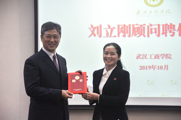 新闻中心讯(记者 袁灏宸 见习记者 张莹丽)10月15日上午,武汉工商学院刘立刚顾问聘任仪式在学校第二会议室举行,董事长彭秀春、党委书记刘生元等出席聘任仪式。