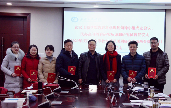新闻中心讯(特约记者 张黎力)12月18日上午9:00,武汉工商学院教育科学规划领导小组成立会议、民办高等教育研究所兼职研究员聘任仪式暨2020年度民办高等教育科学规划研究专项基金资助项目启动仪式在综合楼第二会议室召开。校党委书记刘生元,校长熊蕊,校长助理左宗文、王程军、亓小林、刘春等校领导,以及校教育科学规划领导小组成员、民办高等教育研究所兼职研究员参加了此次会议。会议由校长助理、科技部部长刘春主持。