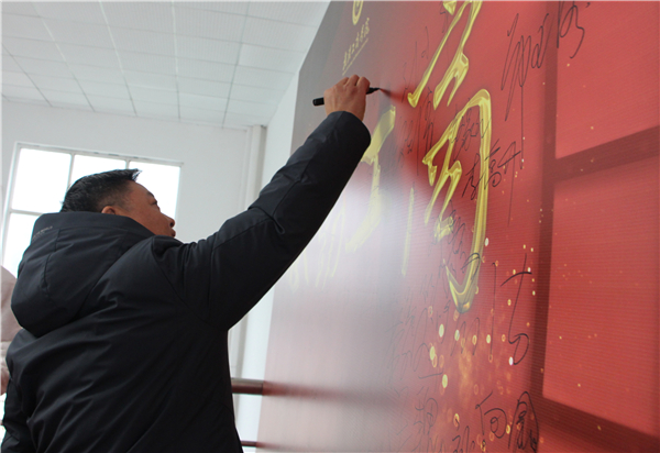 图为刘生元书记在签名墙上签名 摄影:李洋洋