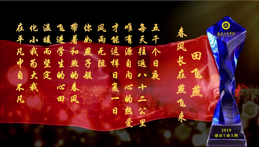 田飞燕老师的家离学校较远,每天她有4个小时都是披星戴月奔波在路上,她动情地说:“一直支撑着我的,是对辅导员工作的那份敬畏与热爱。”为此,她很少有时间陪伴心爱的女儿。颁奖现场,田飞燕老师的爱人和一对双胞胎女儿惊喜亮相,让田飞燕喜极而泣。