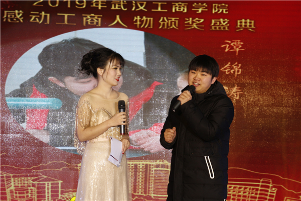 新闻中心讯(记者 北辰 李洋洋)1月9日14:00,武汉工商学院首届感动工商人物颁奖盛典在学校402学术报告厅隆重举行,学校老领导孙松发、龚志伟、陶梅生,家事易农业科技有限公司董事长巴能文,学校副董事长邹继康,党委书记刘生元,校长熊蕊,副校长桂裕清、张俊,校长助理左宗文、王程军、亓小林,董事长助理刘小英等校领导以及各职能部门、二级学院领导和师生参加了本次颁奖盛典。盛典由公共课部党总支书记朱威、宣传策划部老师罗袁璐主持。
