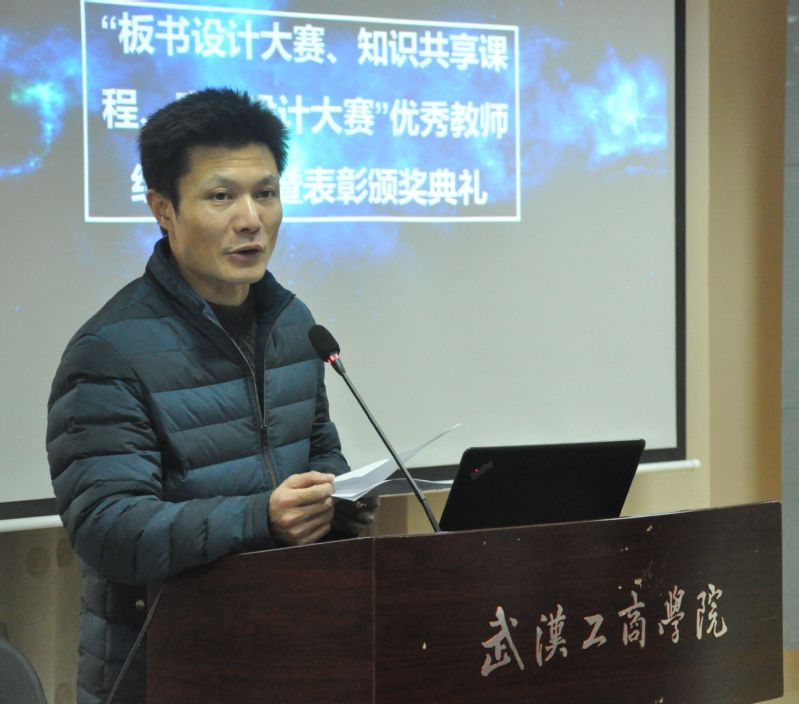 新闻中心讯(特约记者 陈敏)12月30日上午9:00,武汉工商学院“教案设计竞赛、板书设计竞赛、知识共享课程”颁奖典礼暨优秀教师经验分享会在学校第三会议室召开。学校党委书记刘生元、校长助理亓小林、人力资源部部长邢赛鹏以及各学院教学副院长、获奖教师、教师代表近70人参加了颁奖典礼。颁奖典礼由邢赛鹏部长主持。
