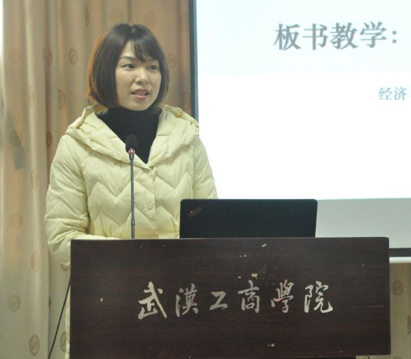 颁奖典礼还安排了获奖教师代表分享环节。经济与商务外语学院喻育芸老师作为板书设计竞赛获奖代表做了题为《板书教学:给思考多一些咀嚼》的分享,她从板书的理论功用、实际境遇、设计路径以及个人参赛思路四个方面展开讲解,将板书的功用概括为“静、慢、精”三个字,谈到如何设计好的板书时,喻育芸老师提供了三种方法,首先将板书变身为学生认知的脚手架;其次让板书成为学习方法的导游图;最后是将板书构建成师生互动的卷轴。她还强调:“好的板书不等于成功的教学,但成功的教学离不开出色的板书。”