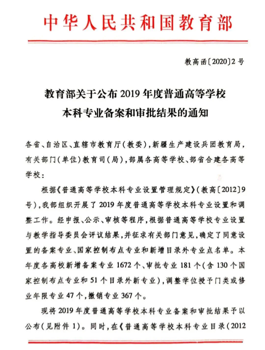 2019年度普通高等学校本科专业备案和审批结果