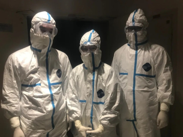 那是1月23日,魏凡第一次穿上防护服走入荆州胸科医院的红区进行采访。隔离区被拉起长长的警戒线,里面的每个人都穿上防护服,戴三层手套、三双鞋套,每一个袖口都被紧紧地绑上胶带。