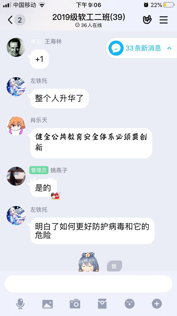 辅导员安排通知学生错峰学习,并在利用QQ群空间平台,同学们积极的发表自己的心得体会。以下为部分截图:
