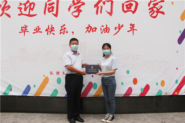 图为党委书记刘生元为学生颁发毕业证 摄影:李洋洋