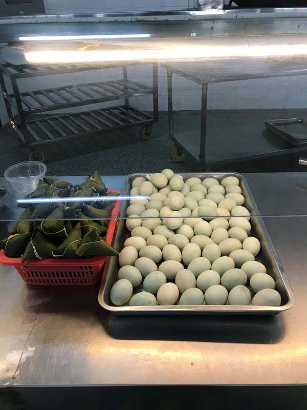 图为学校食堂为每位前来食堂就餐的师生免费赠送粽子和咸蛋 摄影:狄奥