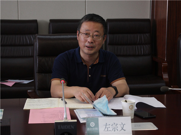 图为左宗文介绍学校秭归定点扶贫工作 摄影:李洋洋
