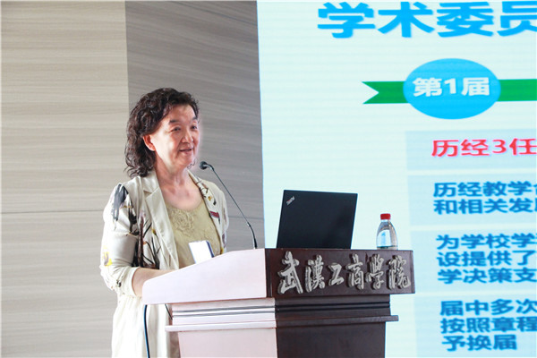 熊蕊代表新一届学术委员会,介绍了学校学术委员会章程制定、学术委员会换届的过程,并代表本届学术委员会向学校前几任校长、上一届学术委员会委员为学校发展做出的科学决策、付出的辛勤努力表示衷心感谢。她说,正是有了他们打下的坚实基础,武汉工商学院才有了长足的进步和发展,第二届学术委员会将延续优良的学术传统,在人才培养、学科专业建设和科研服务等方面继往开来,为学校的教育事业做出新的贡献。