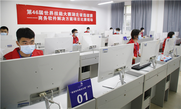 新闻中心讯(记者 李洋洋)7月15日,由湖北省人力资源和社会保障厅、湖北省教育厅主办,湖北省职业技能与鉴定指导中心、武汉工商学院承办的第46届世界技能大赛湖北省选拔赛商务软件解决方案项目在武汉工商学院开赛。湖北省职业技能鉴定指导中心主任张发军、副主任曾九洲,武汉工商学院党委书记刘生元、副校长张俊、软件工程学院院长刘雄华,以及商务软件解决方案项目全体裁判员、领队、教练和选手出席了比赛开幕式。