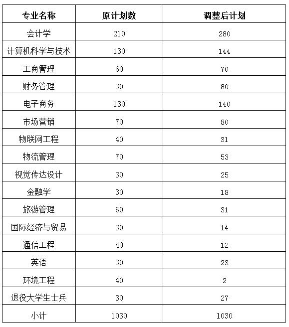 根据《省教育厅关于做好2020年普通专升本工作的通知》(鄂教高函〔2020〕3号)和《武汉工商学院2020年普通专升本招生简章》,现将普通专升本招生计划调整公示如下: