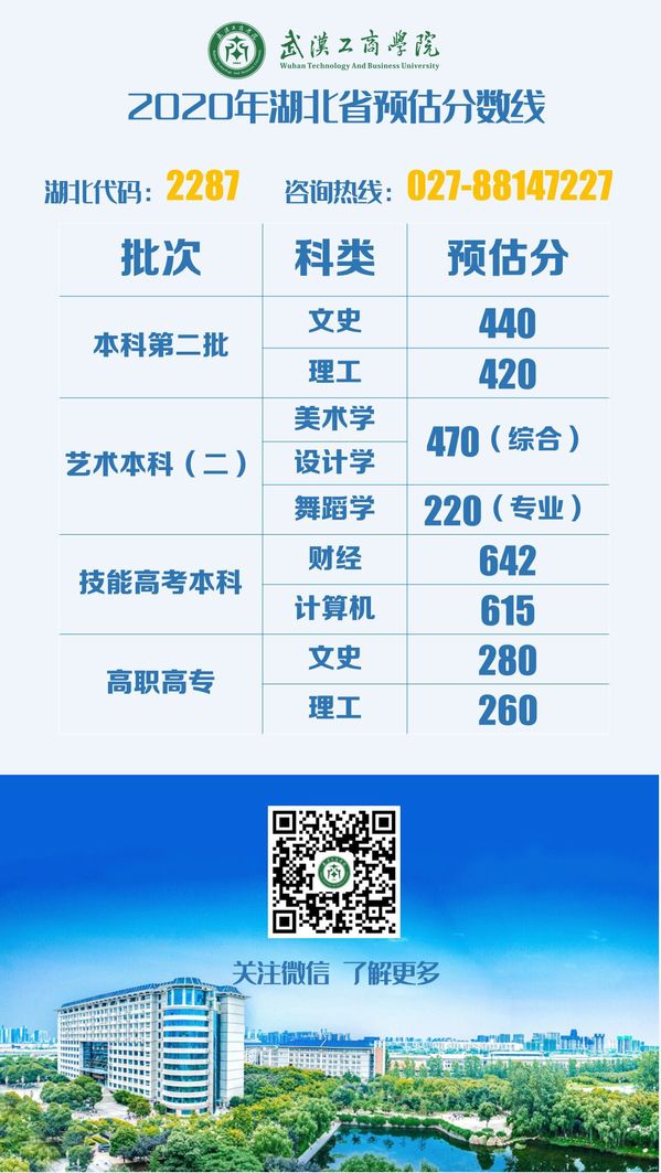 欢迎报考 | 武汉工商学院2020年湖北省预估分数线