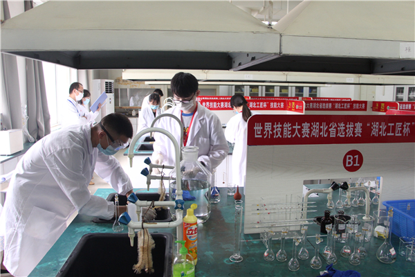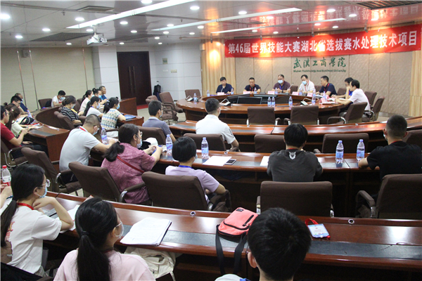 新闻中心讯(特约记者 郑丹 邓芳)8月22日—23日,由湖北省人力资源和社会保障厅、湖北教育厅主办,湖北省职业技能鉴定中心和武汉工商学院承办的第46届世界技能大赛湖北省选拔赛水处理技术项目在武汉工商学院开赛。湖北省职业技能鉴定指导中心竞赛部部长李方,第46届世界技能大赛湖北省选拔赛水处理技术项目专家组组长、中国地质大学(武汉)鲍建国教授,全国青年岗位能手、第45届世界技能大赛水处理技术项目冠军教练、第46届世界技能大赛水处理技术项目湖北省选拔赛裁判长柯瑞华,武汉工商学院党委书记刘生元、副校长张俊、环境与生物工程学院执行院长杨昌柱、社会合作与发展部部长尹贝等领导,水处理技术项目全体裁判员,各高校参赛带队老师、教练员和选手参加了开幕式。本次比赛共吸引了来自武汉科技大学、武汉工程大学、文华学院、湖北生态工程职业技术学院、武汉工商学院及湖北相融检测有限公司共6家单位的15名选手参赛。