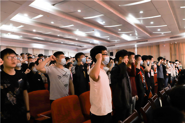 图为党委书记刘生元带领同学宣誓 摄影:冯哲昊
