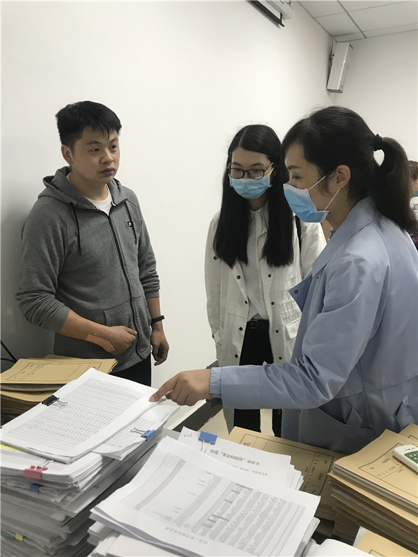 为了让兄弟院校的档案管理人员更全面地了解武汉工商学院档案管理情况,参观档案馆阅览室及库房后,学校档案馆人员带领5位同志分别到学校办公室、教务部和学工部等单位实地参观部门立卷操作情况。在校办看完兼职档案员熊贤保分类的案卷后,参观的人员个个称赞了不起。校办副主任张金华介绍道,要做好部门立卷,关键是收集齐全,校办的做法是把归档范围分解到每个科室,落实到每个人,首先做好预立卷。在教务部,兼职档案员王志芳带领大家参观各科室立卷情况。学籍科科长王慧玲为大家热情介绍了学生入学卡片归档的重要性和收集保存方法。在学工部,副部长、校团委书记邱玉添打开校团委立卷的房间并介绍说,我们的目的是培养人才,教学生自己收集文件、自己动手立卷,在实际工作中锻炼他们。