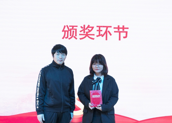 9图为周诗俊老师为三等奖获得者颁奖 摄影:谭艳