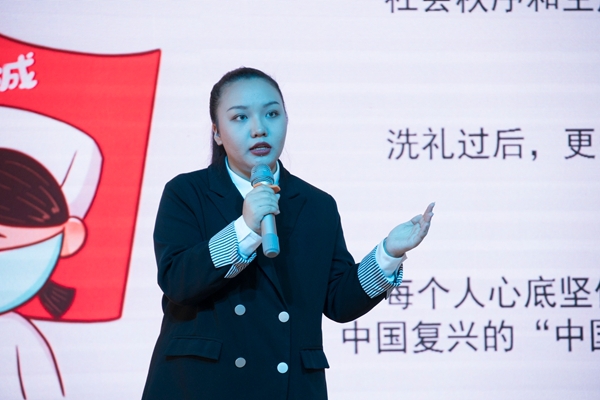 图为一号选手王梅正在演讲 摄影:陈爱媛