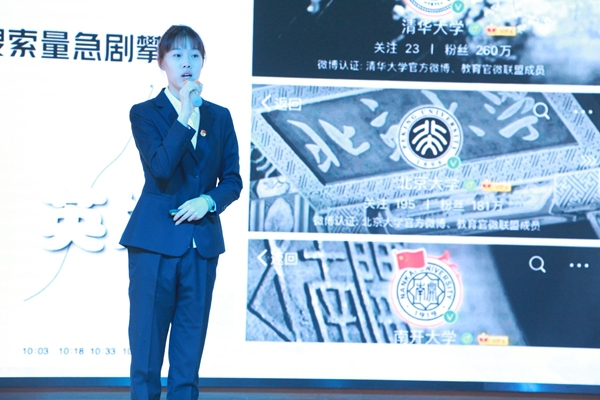 二号选手王子华以“青春中国:挺起新时代共和国的脊梁”为主题,让大家切身体会媒体工作者的社会责任与担当,以及在关键时刻如何发挥党的喉舌作用;四号选手李思怡向大家分享了四川24岁的“雨衣妹妹”不畏艰辛为武汉医护人员免费提供了39天盒饭的抗疫故事,传达出“心有所信,方能行远”的思想理念。五号选手彭佳则以“坚定青春的脚步,共塑我们的中国梦”为主题,满怀激情地讲述了自己对于“四进四信”的认识,语言流畅、情感充沛,获得了评委的一致好评。