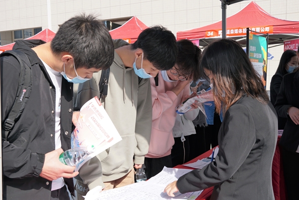 北京学而思教育科技有限公司的招聘展台也吸引了不少同学驻足咨询,该公司招聘人员姜梦琪表示,“感谢学校为公司所提供的招聘平台,在与同学们交流互动的过程中,我们注意到有不少能力突出的优秀学生,也切身感受到大家对岗位的需求及就业的期待,希望借助此次平台可以为我司招募到优秀人才。”