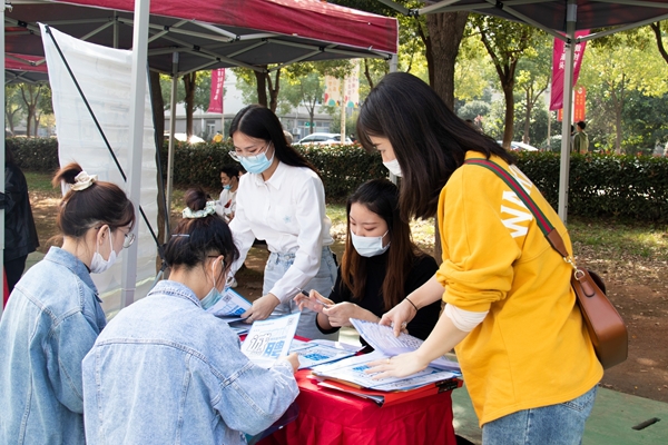 新闻中心讯(记者 陈彦芳 见习记者 柏馨 汪旸)为做好疫情防控常态化下的毕业生就业工作,搭建毕业生与用人单位洽谈交流平台,努力实现毕业生更充分、更高质量就业,10月22日13:00,由湖北省高等学校毕业生就业指导服务中心协同武汉工商学院承办的2020年秋季人才供需见面会在学校体育运动中心前的户外篮球场举行,共有56家企业前来招纳贤才,吸引近千名2021届毕业生入场应聘。