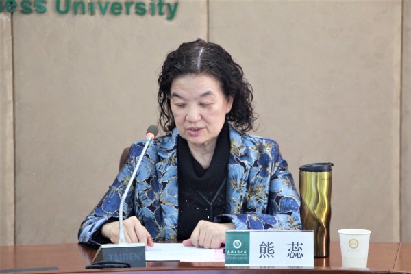 熊蕊校长致辞,她代表学校对李娟总经理一行的到来表示欢迎,她谈到,广州启课程科技有限公司此次与学校开展全面战略合作,不仅向学校提供了宝贵的教学资源,而且双方还将在应用型人才培养模式创新、学科专业共建、课程共建、师资共建、科研项目合作等方面建立长期、稳定、深入的全面战略合作关系,充分体现了公司顺应国家产业发展新形势新要求,关注高等教育领域改革,倾力支持高校“双一流”建设、支持教学向“以学生为中心”转变的专业水准和社会担当,“相信通过双方的共同努力,一定可以在合作中不断创新产教融合发展模式,在合作中实现共赢。”