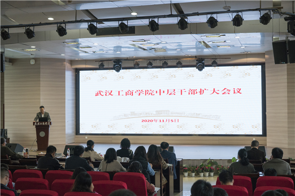 新闻中心讯(记者 丁德欣 万风)11月5日下午,武汉工商学院中层干部大会在402学术报告厅召开,学校董事长彭秀春,党委书记刘生元,校长熊蕊等校领导出席大会,学校全体中层干部、系主任、教学团队、基层教学组织代表参会。会议由刘生元书记主持。