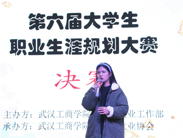 新闻中心讯(记者 刘婕 童睿)11月26日晚6:30,由武汉工商学院招生与就业工作部主办,大学生就业协会承办的第六届大学生职业生涯规划大赛总决赛在体育运动中心403室举行。经过初赛、复赛的激烈角逐,共有 12位选手脱颖而出进入总决赛,其中大学规划组和大学生职业生涯规划组各6人。最终应用技术学院国际经济与贸易专业大二学生杨磊获得大学规划组冠军,文法学院新闻学专业大二学生毕柔获得大学生职业生涯规划组冠军。