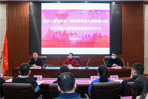 新闻中心讯(记者 陈彦芳)12月3日上午9:00,武汉工商学院在学校第四会议室召开第一届全国技能大赛暨第46届世界技能大赛全国选拔赛出征仪式,董事长彭秀春、党委书记刘生元、副校长张俊、软件工程学院院长刘雄华、环境与生物工程学院执行院长杨昌柱、艺术与设计学院院长王海文、经济与商务外语学院院长张晓骏、社会合作与发展部部长尹贝,以及各赛项参赛选手及指导教练、筹备工作委员会成员参加了本次活动。出征仪式由张俊副校长主持。
