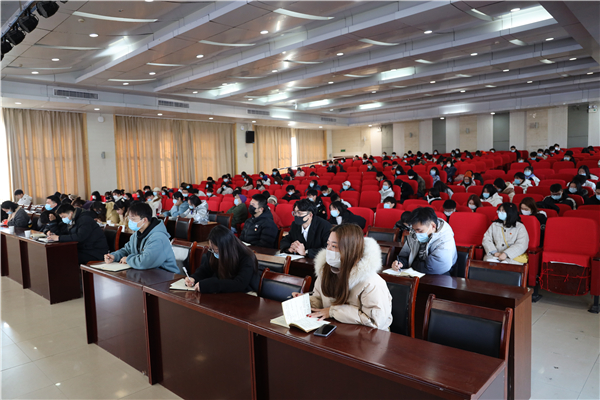 新闻中心讯(记者 汤娉婷 田玮璇)12月15日上午9:00,湖北省学习贯彻党的十九届五中全会精神“青年宣讲团”走进武汉工商学院,共青团湖北省委“青年宣讲团”讲师、武汉轻工大学外国语学院副教授陈德胜在学校学术报告厅为近200余名师生作“新蓝图,新征程”专题宣讲报告,校团委书记邱玉添、副书记叶之培、专职团干李璐瑶,以及各学院分团委书记和校院两级团学骨干聆听了此次报告。报告会由邱玉添书记主持。