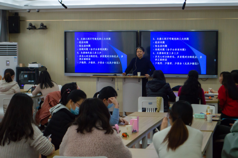 新闻中心讯(记者 陈彦芳)为迎接第111个“国际妇女节”,关爱女性身心成长,增强教师工作幸福感,3月8日上午10:00,武汉理工大学心理健康与生涯发展研究所所长雷五明受邀在外语楼224智慧教室,为武汉工商学院近60名女教师倾情分享“如何做一个成功且幸福的女人”,从男性视角深入分析女性如何在现代高压力、快节奏的环境下更健康地成长,并对女性在个人发展中遇到的现实和心性问题提出专业科学兼具人性化的解决方案。